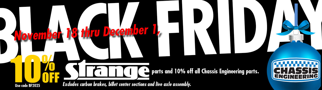 Categories Click to View Categories All Aluminum and Steel Firewall Products & ComponentsAluminum and Steel Interior Components & PartsAluminum and Steel Wheel TubsAluminum Wings and ComponentsAnti Roll BarsAxles, Bearings and StudsBatteries and ChargersBattery Mounts & AccessoriesBottle Mounts and ComponentsBrackets and Tabs Mild Steel Brackets and Tabs Moly Brackets and TabsBrake KitsBrake Master Cylinders and ComponentsCarbon Fiber ComponentsChassis KitsChutes, Mounts and KitsCooling Components and MountsCross MembersDiagonal LinksDoor Hinge KitsDoor latches and Inside Handle LinkageDriveshaft Loops and Containment ComponentsDriveshafts, Yokes & CouplersElectrical and ElectronicsEngine, Trans Mounts and KitsFiller CapsFour LinksFord 9″ Center SectionsFrame RailsFront SuspensionsFront End and Body MountsFuel Cells and MountsGauge PanelsInterior Kits and MountsLadder BarsLadder Bar CrossmembersLead Weight Pucks and MountsLimiters, Engine TorqueMotor Plates, Mid Plates and MountsNitrous Bottle Mounts and AccessoriesPanel Fastening ComponentsPanhard BarPedalsPro Jack Car StandsQuick Release & Detent PinsQuick Removal FlangesRear End Housings and KitsRod Ends Rod Ends – Chromoly Rod Ends – Mild SteelRoll Bars, Cages and AccessoriesSafety EquipmentShifter MountsShocks, Springs and MountsSpools and BearingsSteering ComponentsSteering Wheels and Quick Release HubsSub Frame ConnectorsTools and BooksTransmission Crossmembers & MountsTube Adapters & Slot ClevisesTubing and Plate Steel Steel Plate TubingWheel SpacersWheelie Bars & AccessoriesWindow Frames, Latches & MountsWindow Nets and MountsWishbone LocatorScratch, Dent and Used PartsChassis Engineering T-shirts Drag Racing Parts - Chassis, Suspension, and Driveline Products Featured Products C/E3311 1-1/4” and 1-3/8” Four Link Bar Kit with Tube Adapters $199.95 Add to cart C/E3312 1-3/8” and 1-1/2” Four Link Bar Kit with Tube Adapters $279.95 Add to cart C/E3315 Top Gun XTR (Mild Steel/Chrome Moly) $1,229.95 Add to cart C/E3316 Top Gun XTRM (Chrome Moly) $1,599.95 Add to cart C/E3346 XTR Wishbone Kit $629.95 Add to cart C/E3505 Top Gun Four-Link Kit w/o Shock Mt Bkts (Less Rod Ends) $639.95 Add to cart C/E3512 Kit with #3515 TOP GUN FOUR-LINK (pictured) $1,941.65 Add to cart C/E3515 Top Gun Four-Link Kit w/shock Mt Bkts (Less Rod Ends) $699.95 Add to cart C/E3606 Outlaw Adjustable Ladder Bar (Pr) $799.95 Add to cart C/E3606A Weld Up Outlaw Ladder Bars (Pr) $769.95 Add to cart C/E3607 32″ Double Adjustable “Pro 1” Ladder Bar (Pr) $484.95 Add to cart C/E3627 Stage I Ladder Bar Suspension Kit $781.85 Add to cart C/E3634 Stage II Ladder Bar Suspension with Strange Aluminum Coil Overs $1,414.65 Add to cart C/E3714 -Adjustable Lower Shock Mount (pictured) (pr) $68.95 Add to cart C/E3720 -Lower Rear Shock Mounts Notched for Back Brace (pr) $68.95 Add to cart C/E3721 Adjustable Shock Mount Kit with No Weld on Housing Brackets $47.95 Add to cart We install All the parts we sell. Full Fabrication shop At Your Services... Now offering Chassis tuning at our local track or the track of Your choice! Shop Now Welding Laser Work CNC Bending Tin Work Turbo Plumbing